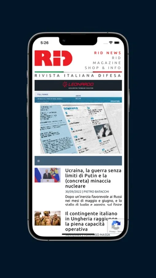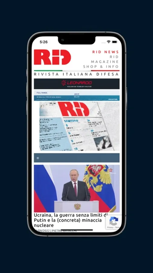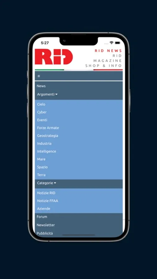 RID - Rivista Italiana Difesa (Italian Defence Magazine) is leading Defence publication in Italy since 1982 and reference point for all defence professionals and general press. It’s dedicated to technical, tactical and strategic matters regarding Defence, as well as geopolitical aspects. It’s published on a monthly basis and the offer is completed by the free online news. The App recently developed is intended to give boost to the free news within a larger public, not only defence specialists.