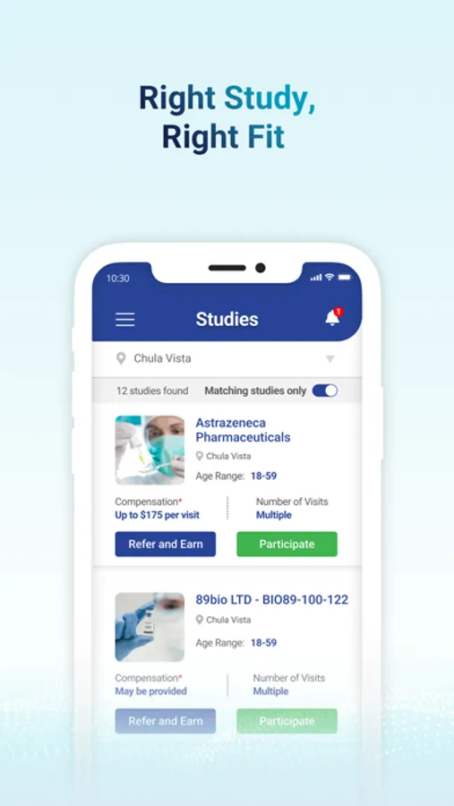 Explore New Studies: Instantly access a curated list of study opportunities tailored just for you.