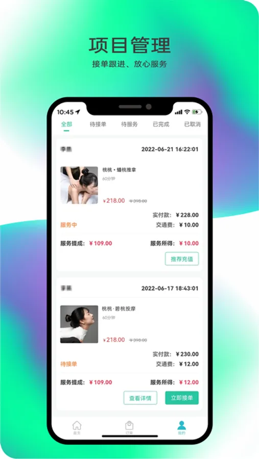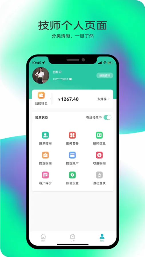 桃桃到家技师平台是用于技师用户在桃桃到家平台做线上业务的管理平台。