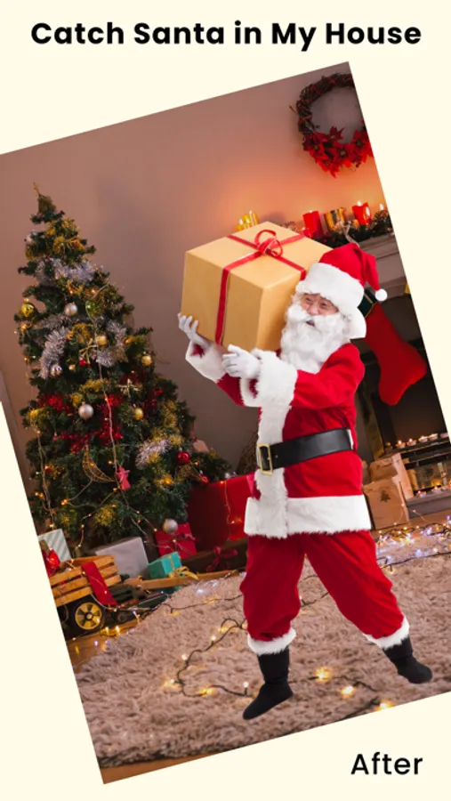 Catch Santa in My Home App Allow you to capture picture of Santa Claus in your home. Image the reaction of your kids when they see picture of Santa leaving gifts in your home. This app gives proof to your kids that Santa Claus came home to leave gifts.