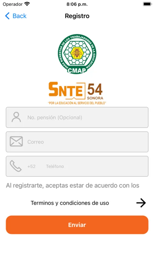 Aplicación CMAP de la Sección 54 del SNTE en la cual se pueden consultar diferentes servicios, así como tener una comunicación más efectiva.