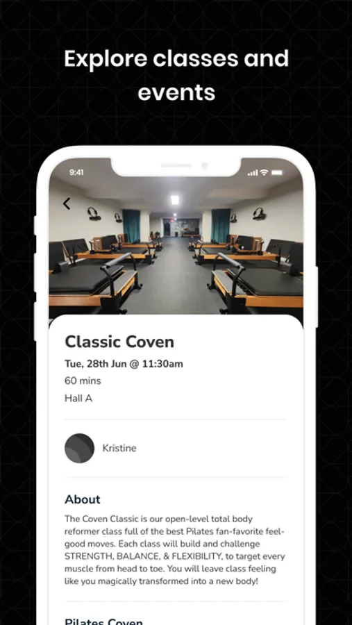 Download the Pilates Coven studio app and enjoy the ease of viewing and sign-up for classes, purchase packages, check deals and promotions, find studio information, and more!