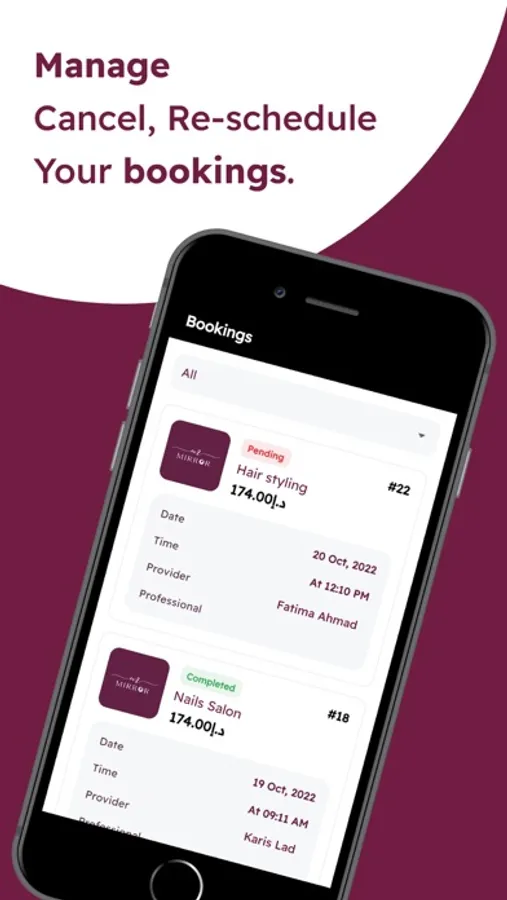 - Mirror offers instant booking information with real-time SMS and email notifications when you book a salon or appoint beauty services freelancers.