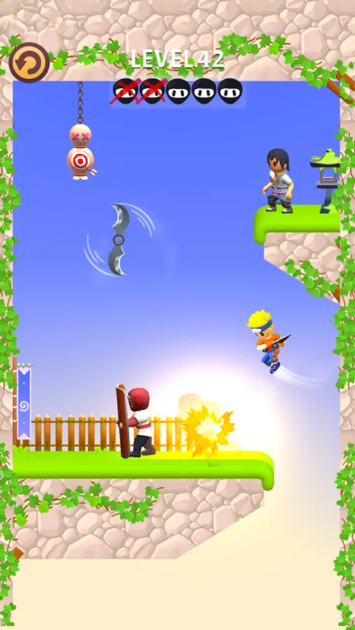 You have to go through exploding barrels, different types of warriors - ninjas, dangerous bosses, and much more. Learn to control your weapons, hit your opponent, teleport a distance and dodge attacks. Only by learning all the skills of a stealth assassin can you become a true kunai dagger master!