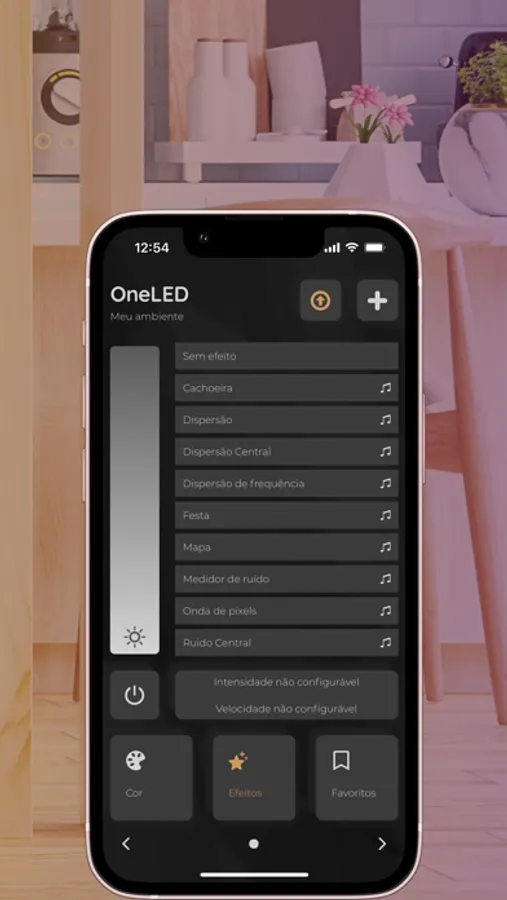 Falando em efeitos e festa, a OneLED disponibiliza efeitos controlados por áudio. Em cada luminária está instalado um microfone capaz de captar a música do ambiente e converter em efeito. Música e luz combinadas são ingredientes indispensáveis para criar um ambiente descontraído e moderno.
