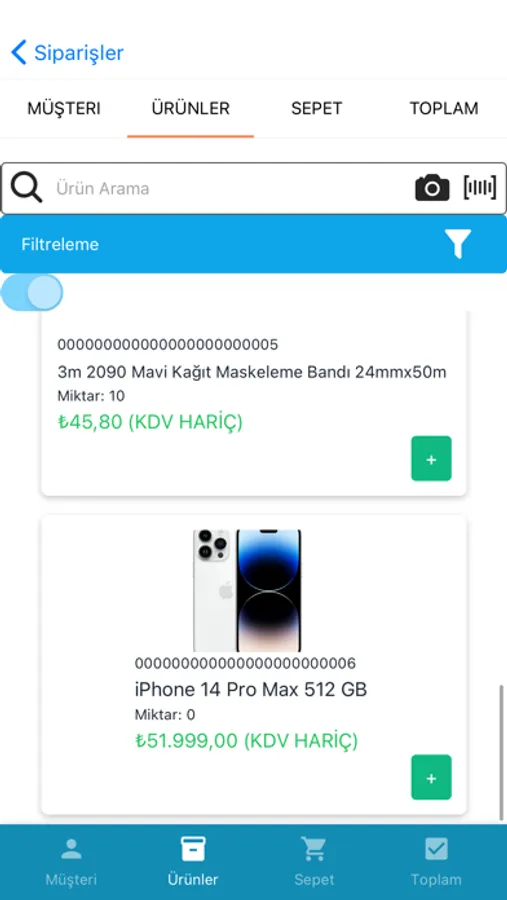 • Barkod ile hızlı ürün arama.