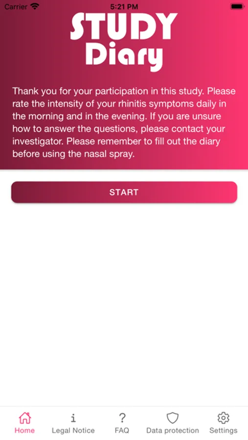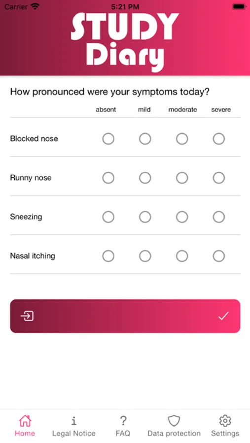 This App is designed to simplify the timely and accurate documentation of your symptoms (e.g., acute viral rhinosinusitis or grass pollen allergy) and provide the most accurate data possible for clinical research. In addition, the use of study medication as well as the use of medication for symptom control can be documented depending on the study.