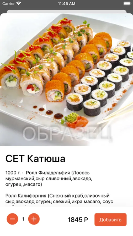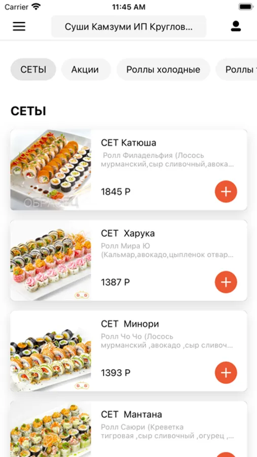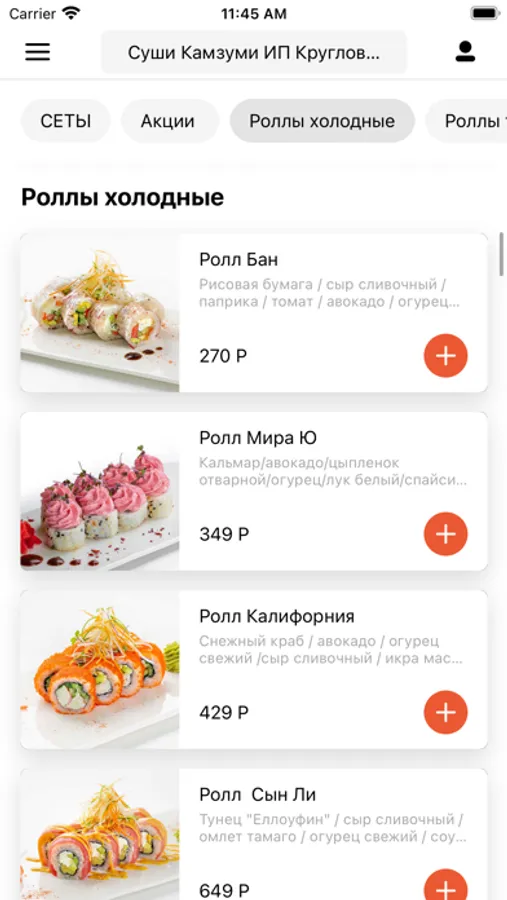 Приложение для заказа еды из ресторана Kam-zu-mi