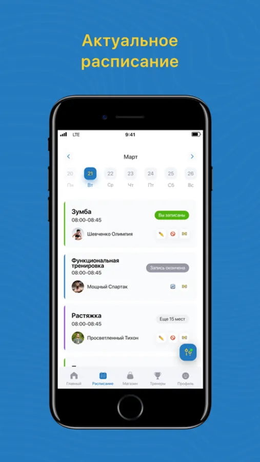 Посмотреть актуальное расписание тренировок;