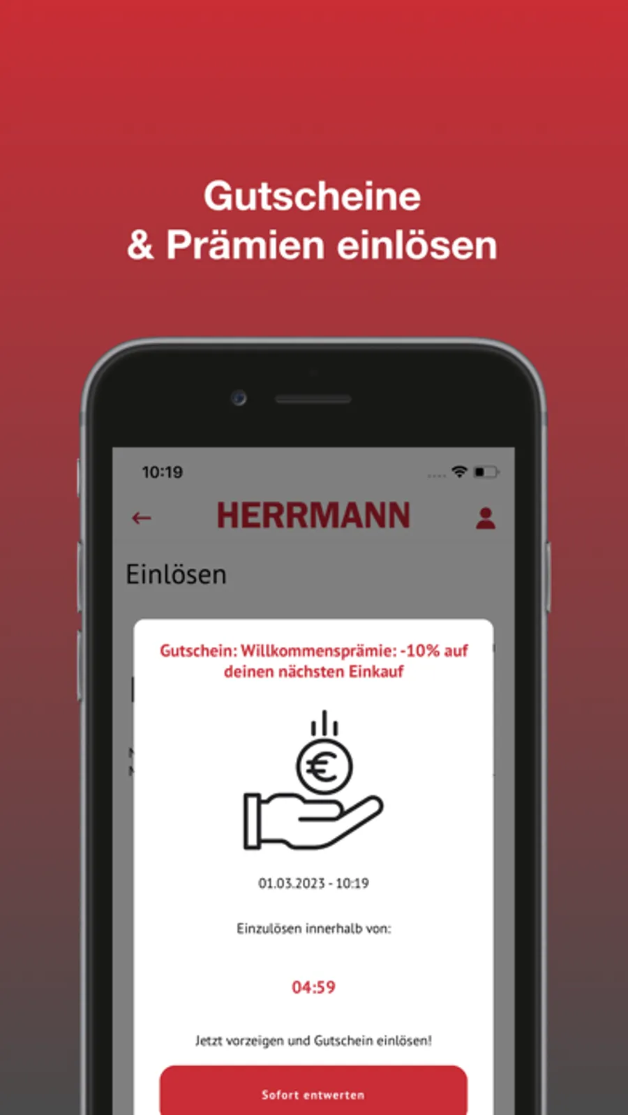 Registrieren Sie sich jetzt in der HERRMANN APP und erhalten Sie einen 10% Gutschein für Ihren nächsten Einkauf und 300 Bonuspunkte als Startkapital.