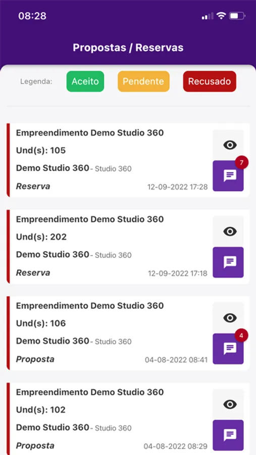 Controle as reservas e propostas, e deixe toda troca de mensagens registrada na plataforma.