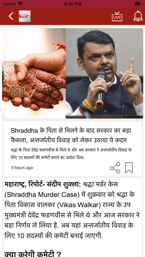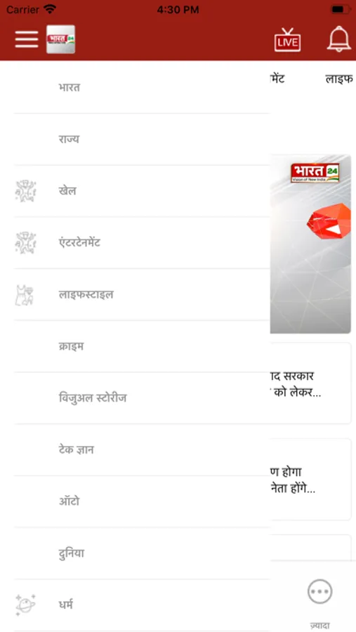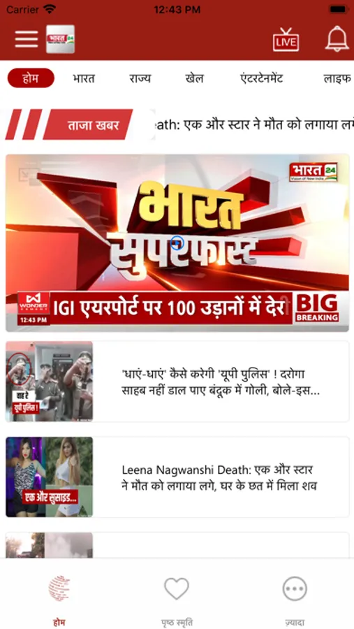The official Bharat24 Hindi News app brings you the latest news and videos. We offer Hindi News (हिंदी समाचार) through Live TV, Videos, Debate and Shows. This app brings you Breaking News (ब्रेकिंग न्यूज़), Business News, Bollywood News, National News Updates, Lifestyle and Entertainment News, Technology News, International News etc.