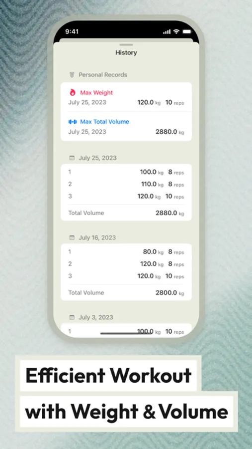 No more wondering, "What was my last record?" or "What's my current max weight?". Swiftly check current records, total volume, and the last three sessions, ensuring efficient training.