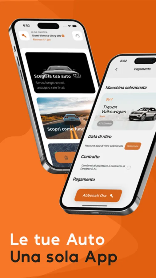 Con Dootbox, registrarsi, prenotare l'auto desiderata e gestire il tuo abbonamento è semplice e intuitivo. Scegli tra una vasta gamma di veicoli, tra city car, berline e SUV, a seconda delle tue esigenze.