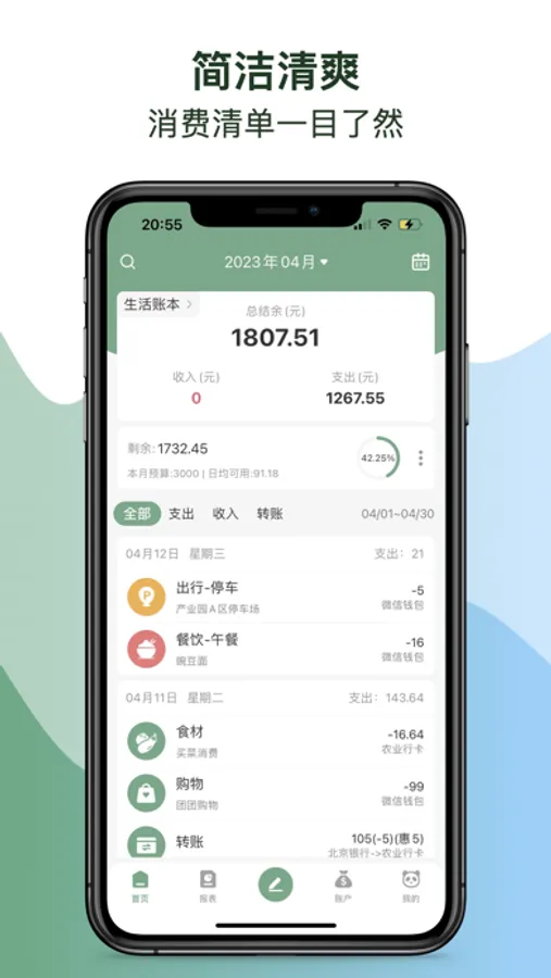 每次记账,你会知道你今天、这周、这个月还剩多少预算可以支出;