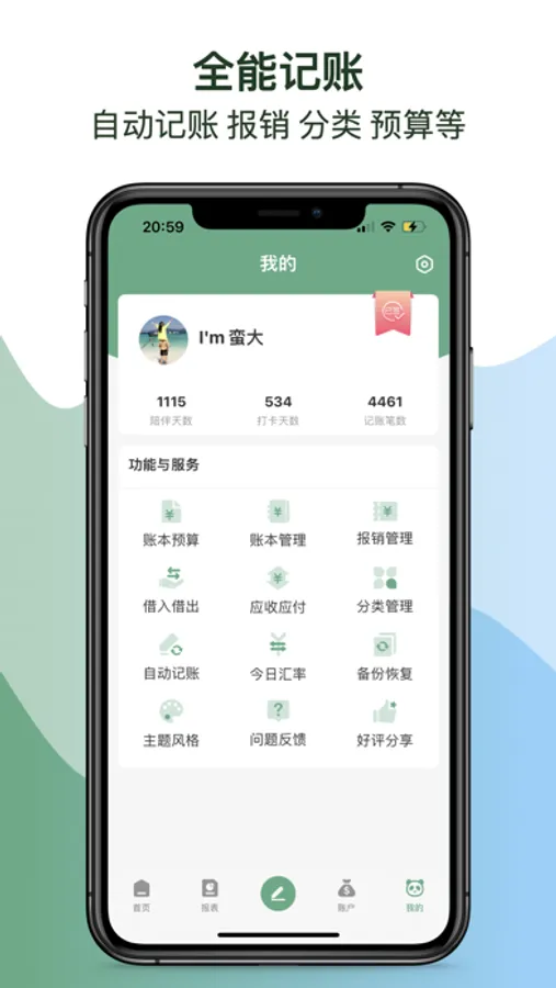熊猫记账是一款纯记账软件,功能丰富实用,日账、周账、月账、年账,汇率换算、日历账单、账单导入导出、记账分类自定义、自动记账、周期记账、分期记账、转账、报销、饼状图、折线图、记账报销、存钱计划、定时提醒记账等一应俱全,还有多样的主题,数据本地备份、云端备份、随手记录生活的点点滴滴,并实现了账单同步到本地及云端,即使换了手机也能轻松的同步账单数据,超级简单实用,熊猫记账,生活记账一个搞定!