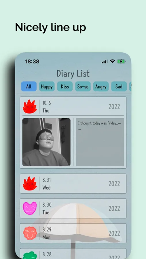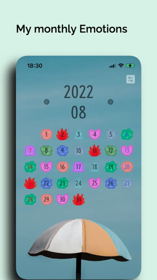 You can collect the emotional characters of the day you wrote them and check them at a glance on the calendar.
