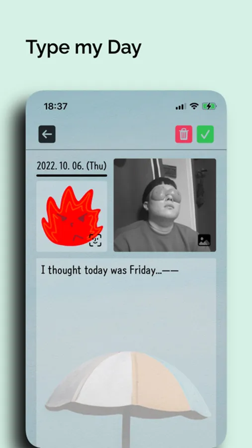 "Today I Was" is a very simple diary app that records a day through a cute character, a picture, and a diary.