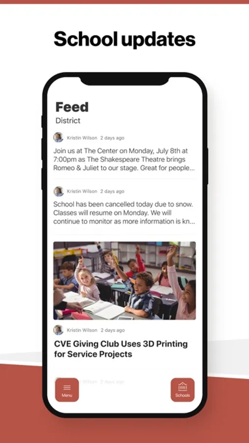 In the Live Feed is where you'll find updates from the administration about what's going on in the district right now. Whether that's celebrating a student's success, or reminding you about an upcoming deadline.