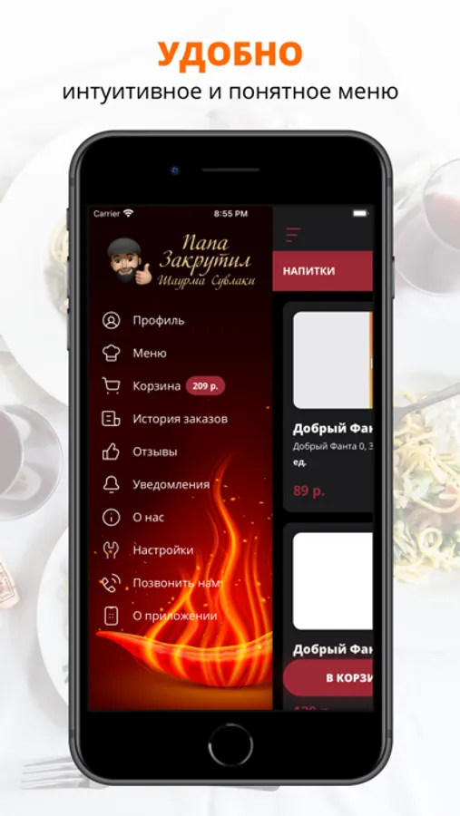 Скачивайте наше приложение, оформляйте заказ и наслаждайтесь любимой едой, где бы Вы ни были! Приятного аппетита!