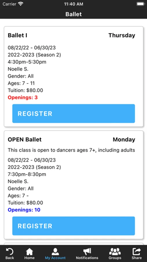The Dance Lab OC app allows you to manage your account with ease, register for classes, master classes and workshops. You'll also receive important notifications about class changes, closings, registration openings, special announcements, and upcoming events.