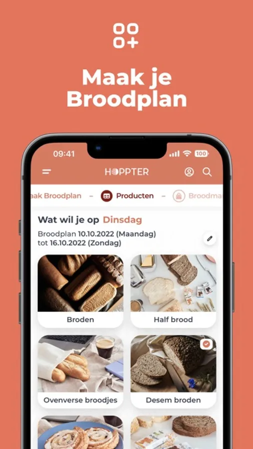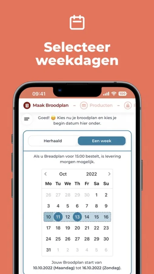 • Create your breadplan: choose the weekdays when you like your bread to be delivered, and add your preferred bread and pastries to the chosen days.