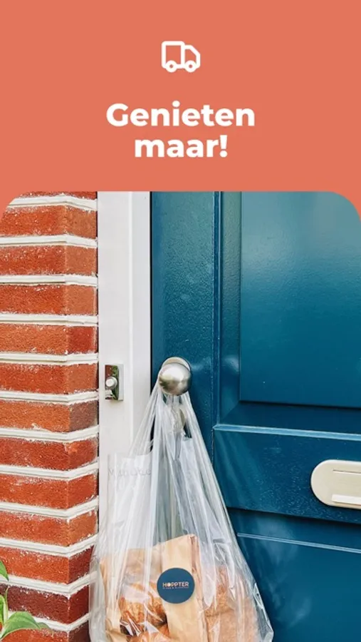 Hoppter delivers bread to the residential addresses in the mornings by hanging bags with bread on the doorknobs. You can indicate if you want that a courier calls you or rings the bell. You can also leave special instructions, for example if you want bread to be left in a parcel box.