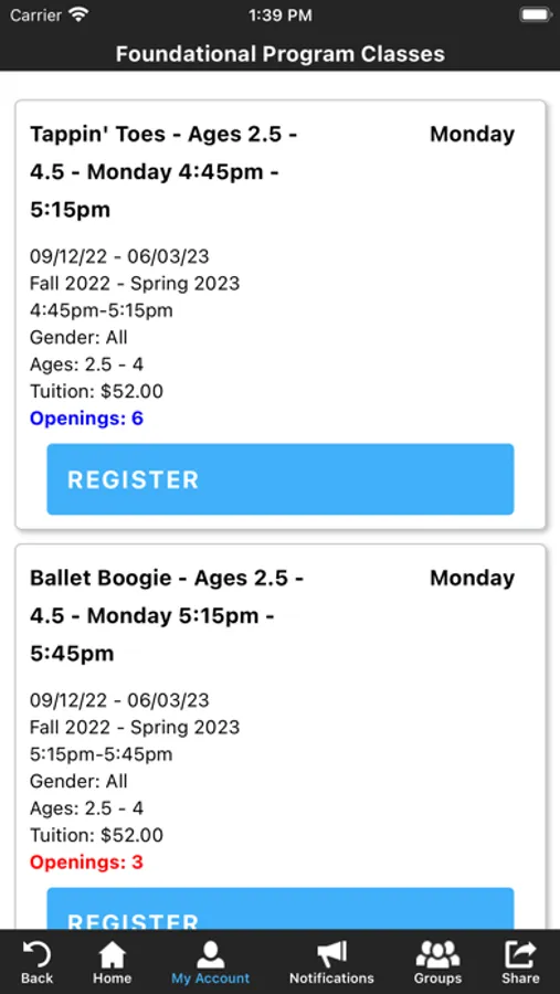 The LimeLitez app allows you to manage your account with ease, register for classes, parties, and special events. You'll also receive important notifications about class changes, closings, registration openings, special announcements, and upcoming events.