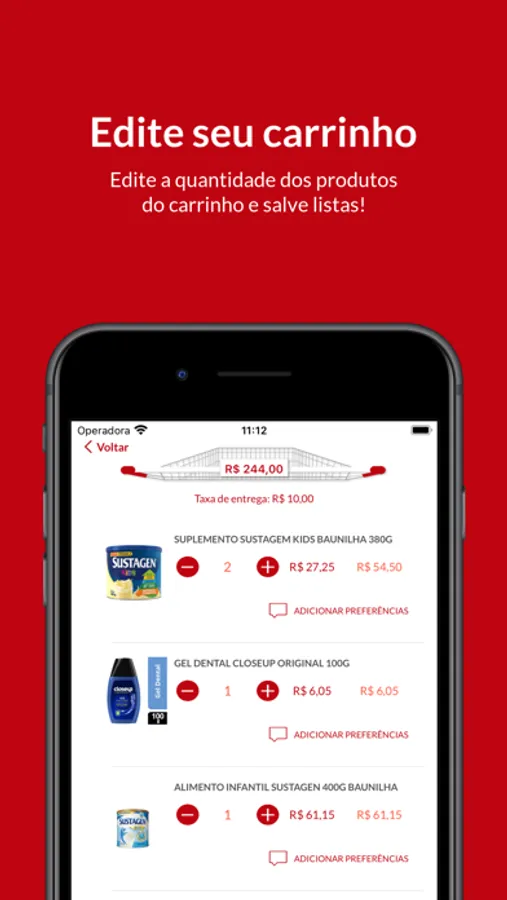 • Adicionar produtos no seu carrinho com um simples tocar e arrastar.