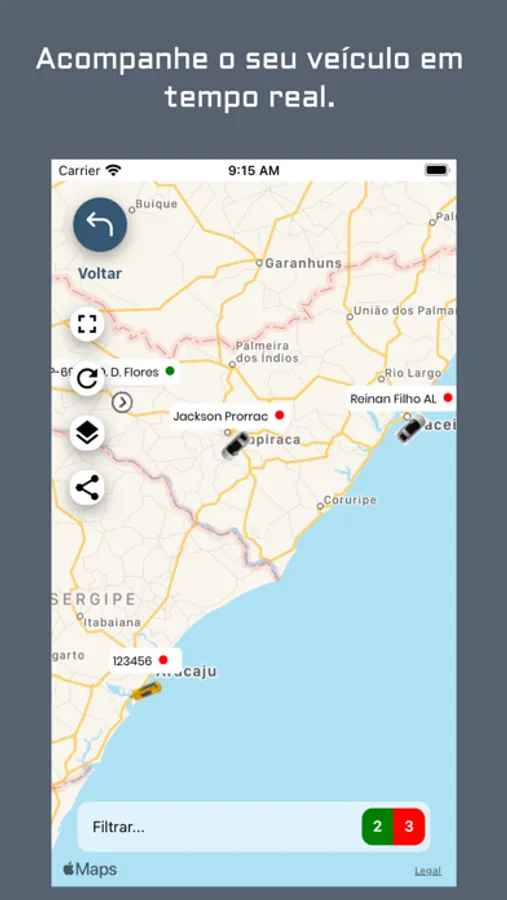 - Visualize de forma rápida e prática, a posição do seu veículo em tempo real no mapa.