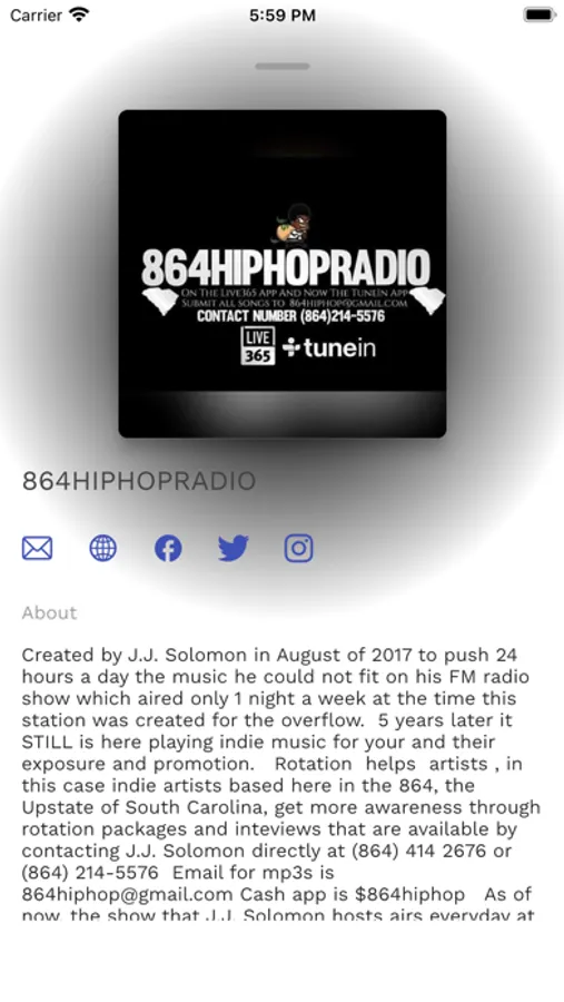 Created by J.J. Solomon in August of 2017 to push 24 hours a day the music he could not fit on his FM radio show which aired only 1 night a week at the time this station was created for the overflow. 5 years later it STILL is here playing indie music for your and their exposure and promotion. Rotation helps artists , in this case indie artists based here in the 864, the Upstate of South Carolina, get more awareness through rotation packages and inteviews that are available by contacting J.J. Solomon directly at (864) 414 2676 or (864) 214-5576 Email for mp3s is 864hiphop@gmail.com Cash app is $864hiphop As of now, the show that J.J. Solomon hosts airs everyday at 4pm and 8pm listen on your mobile device .