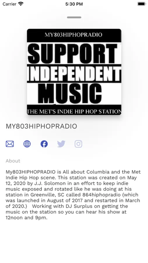 My803HIPHOPRADIO is All about Columbia and the Met Indie Hip Hop scene. This station was created on May 12, 2020 by J.J. Solomon in an effort to keep indie music exposed and rotated like he was doing at his station in Greenville, SC called 864hiphopradio (which was launched in August of 2017 and restarted in March of 2020.) Working with DJ Surplus on getting the music on the station so you can hear his show at 12noon and 9pm.