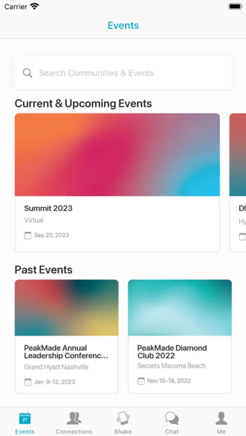 Download the PeakMade Events app to participate in PeakMade Real Estate meetings, conferences, and events like our Annual Leadership Conference, Sales & Marketing Summit, Diamond Club, and more.