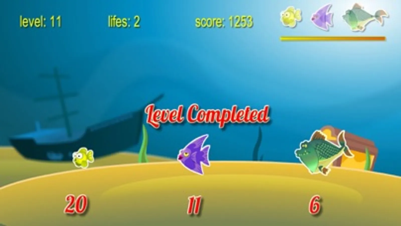Eat smaller fishes than the Hero, they provide energy to make the Hero to grow up.