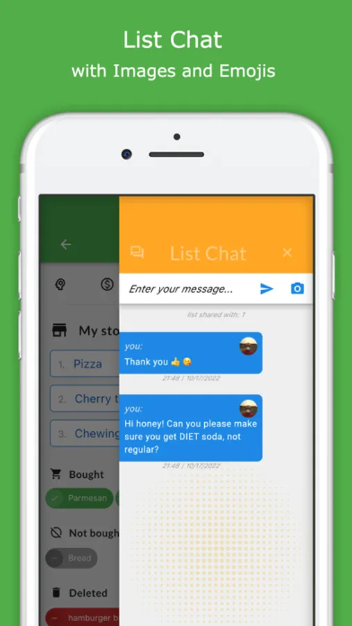 Use instant messages to talk about items on the list. You can even upload pictures of products to show packages of what exactly you want to buy.
