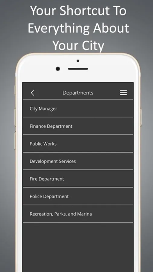 Government, Residents, and Departments sections allow you to have all the important contact and destination information in your city with the click of a button. Learn about your city's elected officials. Find parks, facilities and points-of-interest along with information, phone numbers, maps and directions.