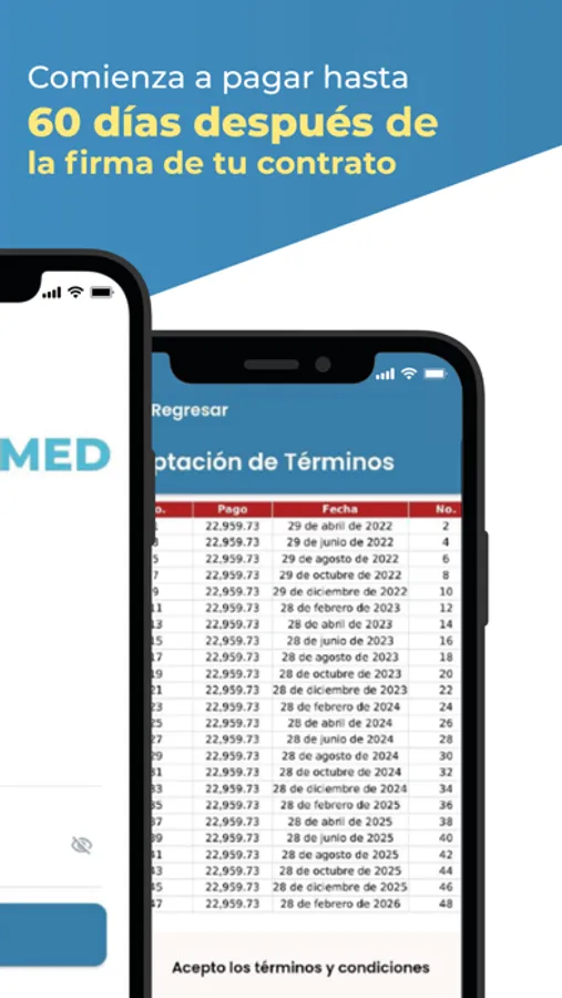 Elige el monto y plazo para pagar tu cirugía, llena tu solicitud, carga tus documentos y sigue el estatus de tu solicitud. Todo desde nuestra app!