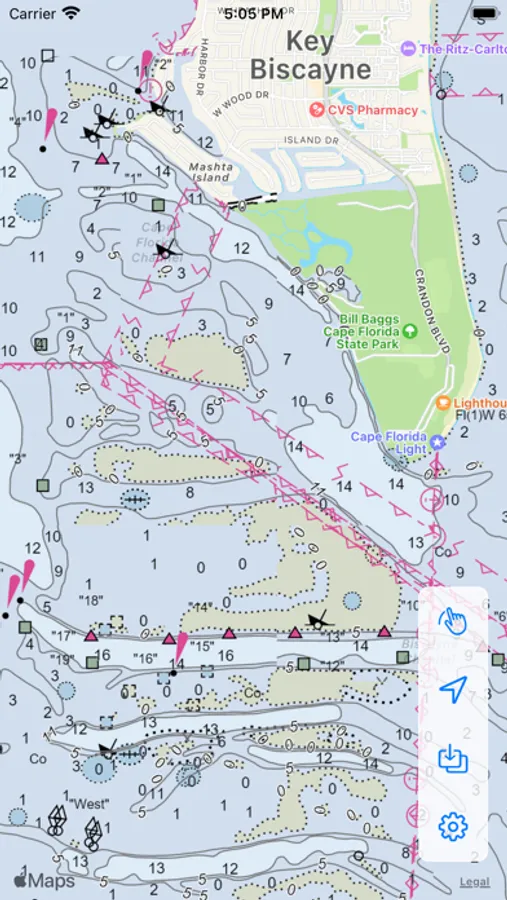 This app does not fulfill chart carriage requirements for regulated commercial vessels under Titles 33 and 44 of the Code of Federal Regulations.