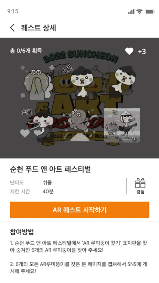순천 푸드 앤 아트 패스티벌 행사장에서 즐기는 AR 게임 입니다.