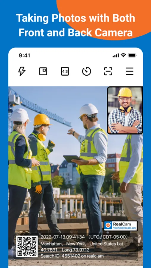 Turn on both front and back camera to make your photo/video more credible. You can close front camera on edit page.