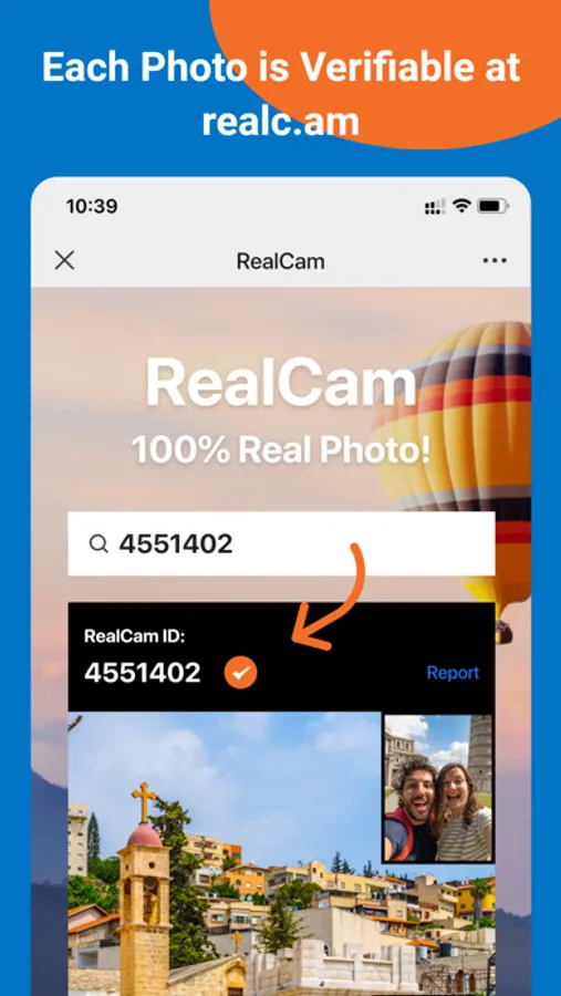 Unique ID and QR code for each photo. Search ID or scan QR code to find if the photo/video is real on realc.am
