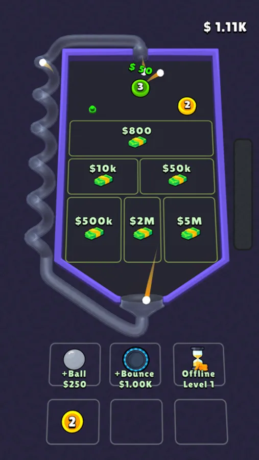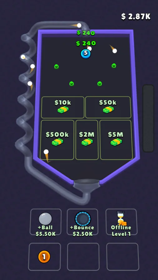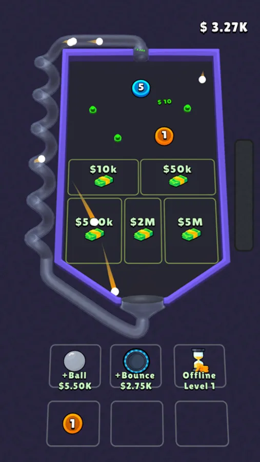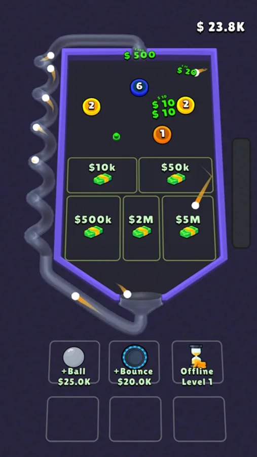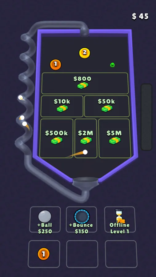 Merge pins to create more sufficient new ones. Try to rearrange them and create more balls to increase income per second.