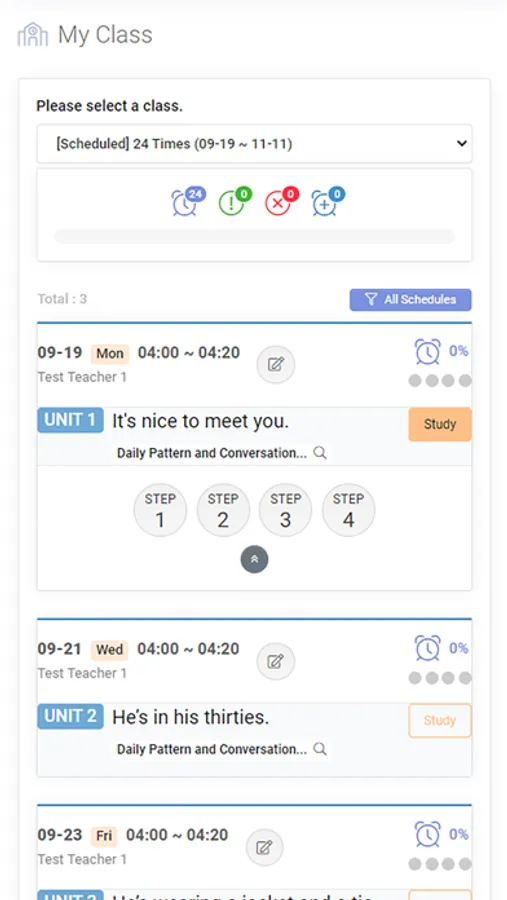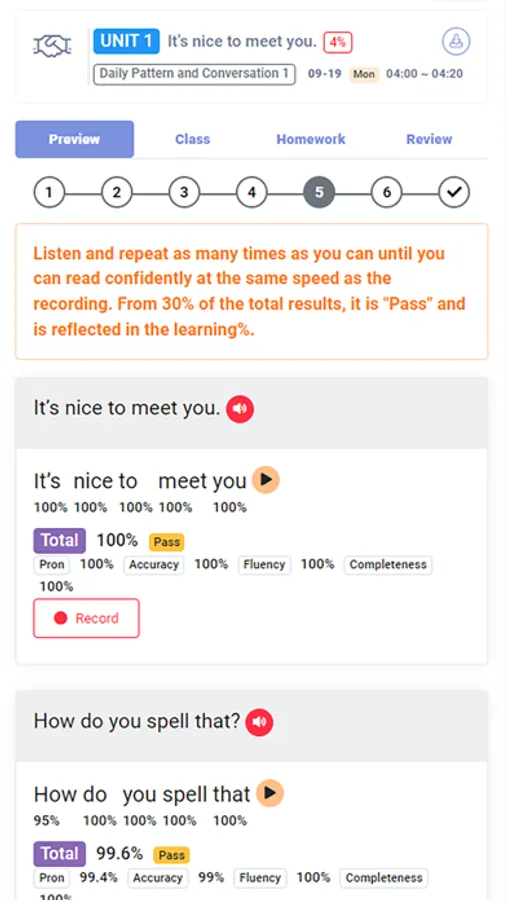 The 4-step Smart learning system results in long-term language retention for students with class preparation and exercises.