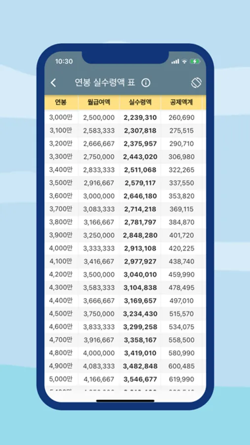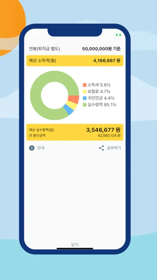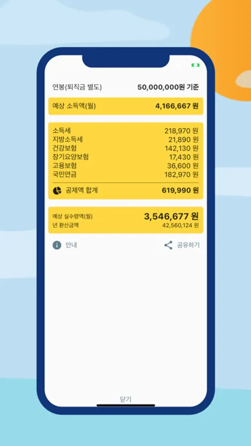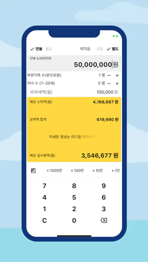 입력과 동시에 예상 실수령액과 공제액 정보가 바로 표시됩니다.