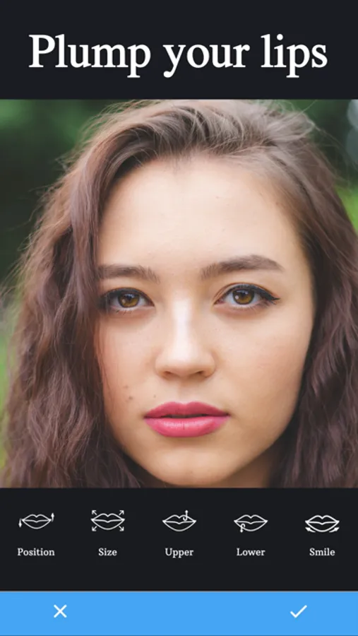 You can also use our lips plumper tool to make your lips look more prominent and attractive. Besides plumping, you can change the shape of your lips. If you are not smiling in the picture, you can use our tool to make anyone smile in the picture. No more unhappy people in your photos!