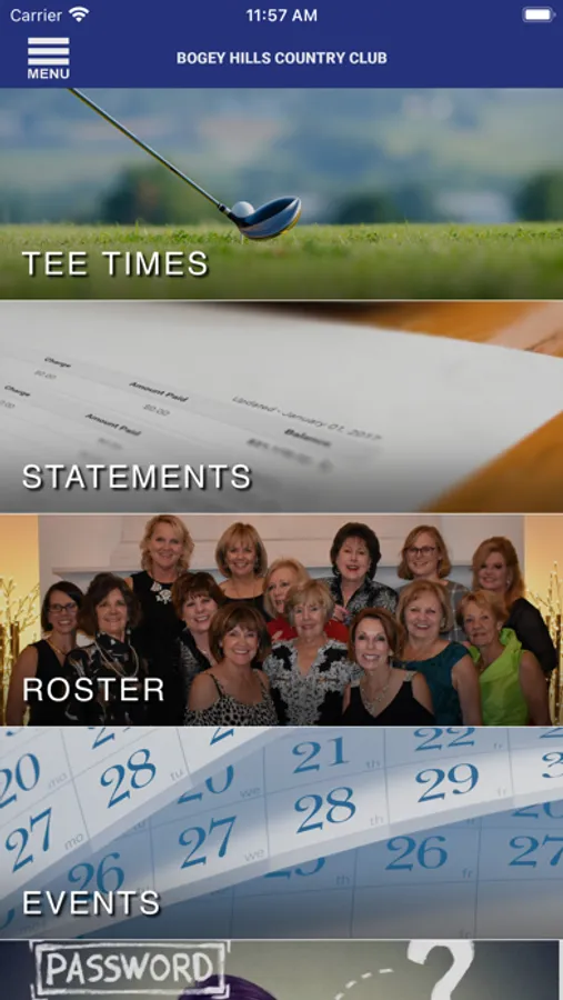 Delivering the ability to connect Bogey Hills Country Club to your mobile device. Bogey Hills Country Club app provides members with the ability to view their Statements, make Dining Reservations, Online Food Ordering, and even book Tee Times. Use the Roster to connect with other members and receive notifications on upcoming Club events, all by the way of your handheld device or tablet.