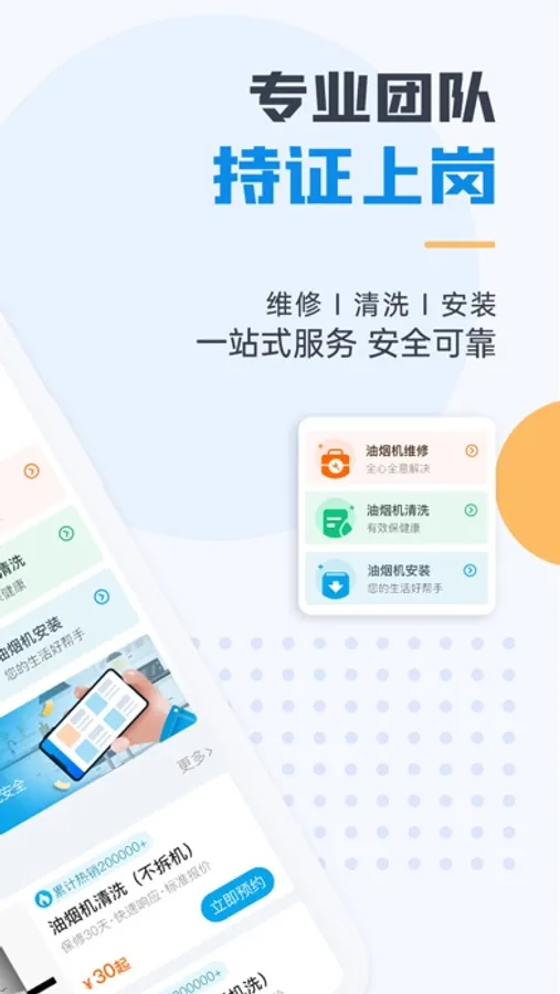 油烟机维修清洗致力于为消费者提供一站式油烟机维修、清洗、安装服务,让用户以透明合理的价格,享受专业、便捷、高品质上门服务。