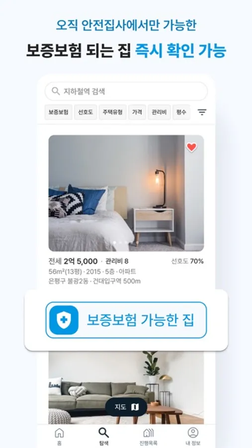 보증보험 가능한 안전한 집 구하는 부동산 앱, 안전집사!