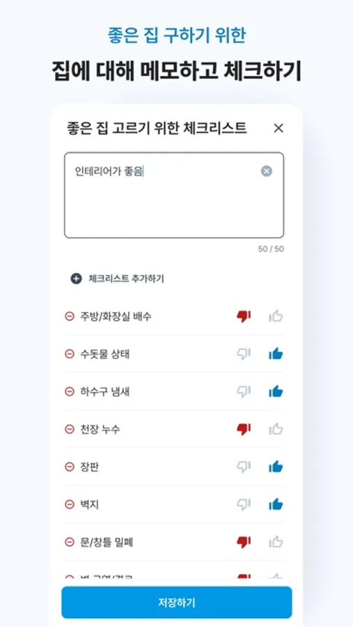 ● 직접 방문한 집에 대해 메모하고 체크리스트 작성