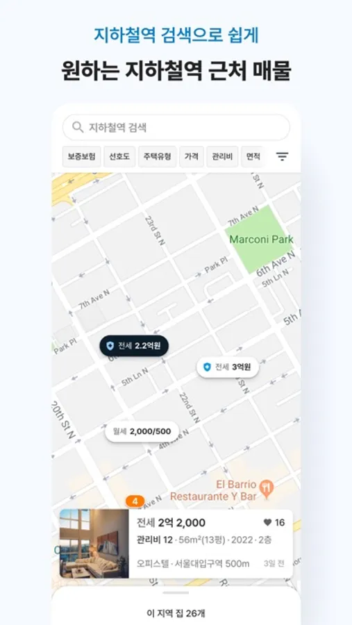 - 아파트, 빌라, 오피스텔, 원룸 등 모든 부동산 매물을 검색으로 찾아보세요.